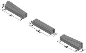 | afmetingen (cm) | straal R (m) | lengte (cm) | hol/dol | visbek | aantal per 360° | gewicht (kg) | |