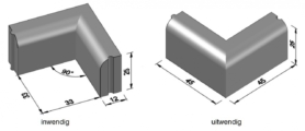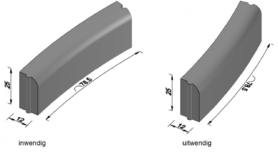 | afmetingen (cm) | straal R (m) | lengte (cm) | hol/dol | visbek | aantal per 360° | gewicht (kg) | |