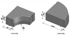 afmetingen (cm) straal R (m) hoek hol/dol visbek gewicht (kg)