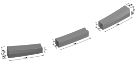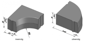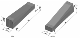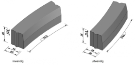 | afmetingen (cm) | straal R (m) | lengte (cm) | hol/dol | visbek | aantal per 360° | gewicht (kg) | |
