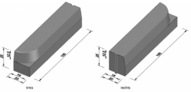| van profiel (cm) | naar profiel (cm) | straal R (m) | lengte (cm) | uitvoering | hol/dol | visbek | gewicht (kg) |