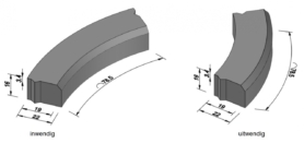 | afmetingen (cm) | straal R (m) | lengte (cm) | hol/dol | visbek | aantal per 360° | gewicht (kg) | |