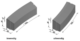 | afmetingen (cm) | straal R (m) | lengte (cm) | hol/dol | visbek | aantal per 360° | gewicht (kg) | |