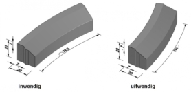 | afmetingen (cm) | straal R (m) | lengte (cm) | hol/dol | visbek | aantal per 360° | gewicht (kg) | |