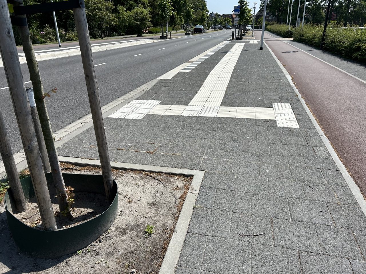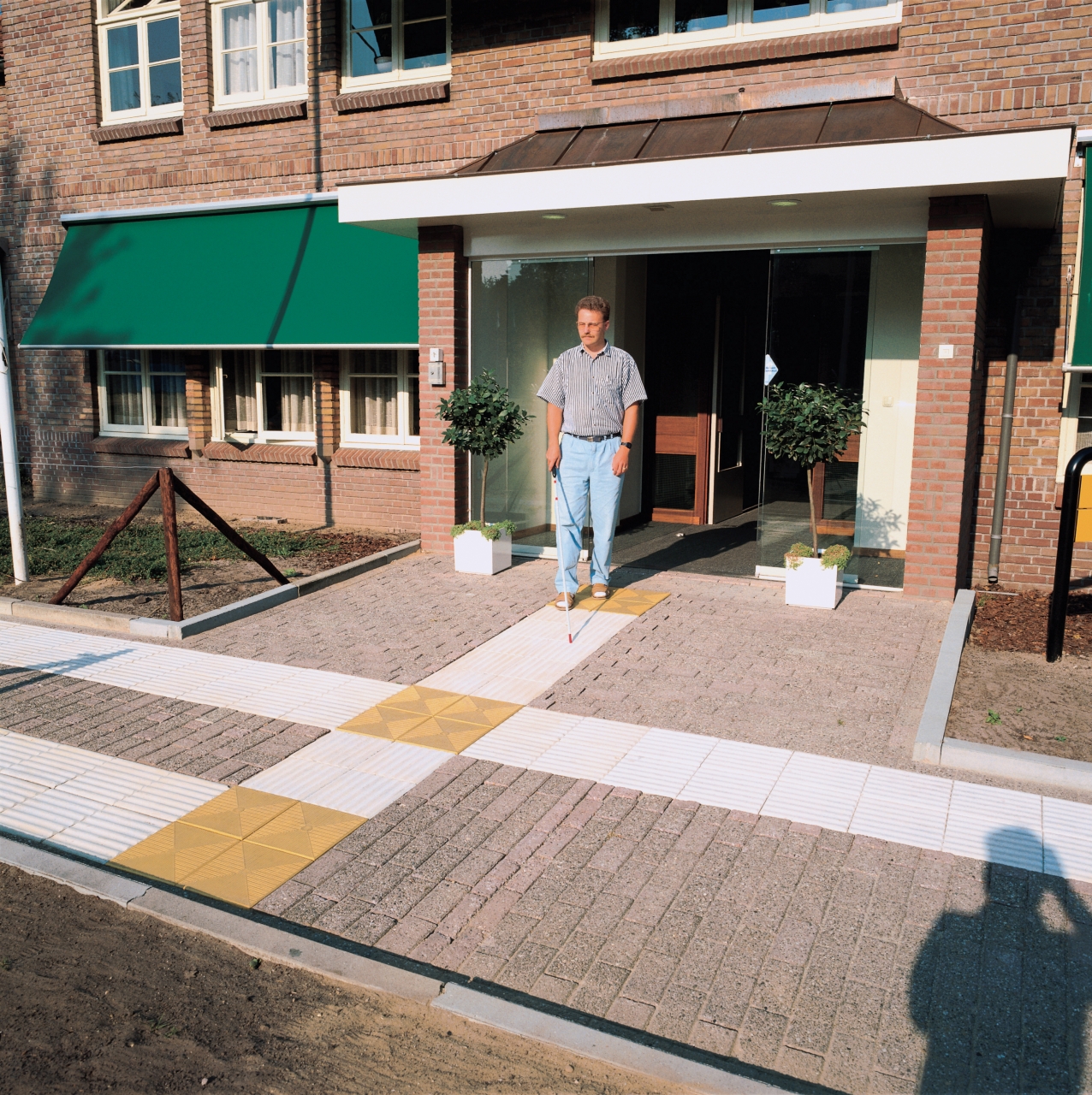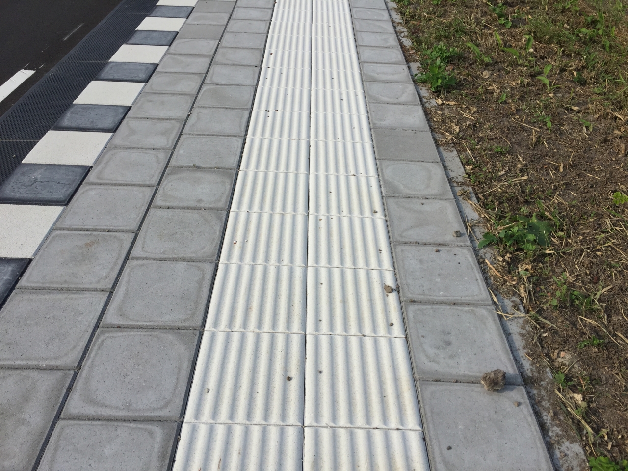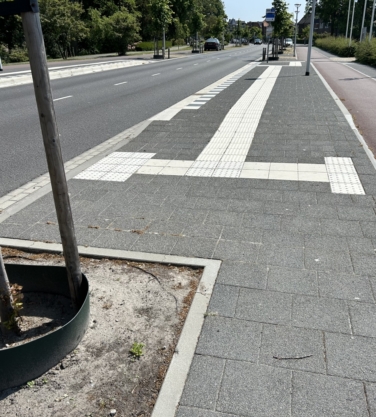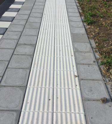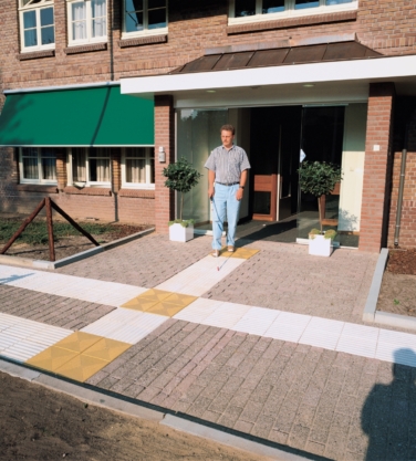 De geribbelde tegels vormen een doorgaande lijn in de bestrating waarop visueel gehandicapten zich door voetcontact of met de blindenstok kunnen oriënteren. De betonnen geleidelijntegels zijn leverbaar voorzien van 4 of 7 ribbels.