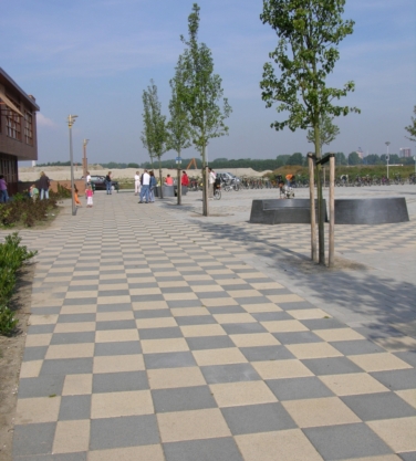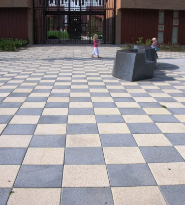 Het ruime aanbod van slijtlaaguitvoeringen en formaten maakt vele decoratieve en creatieve toepassingen met deze gestaalstraalde tegels mogelijk. Ze zijn perfect te combineren met de diverse formaten Spectrum en/of Spectroliet-straatstenen van Giverbo.