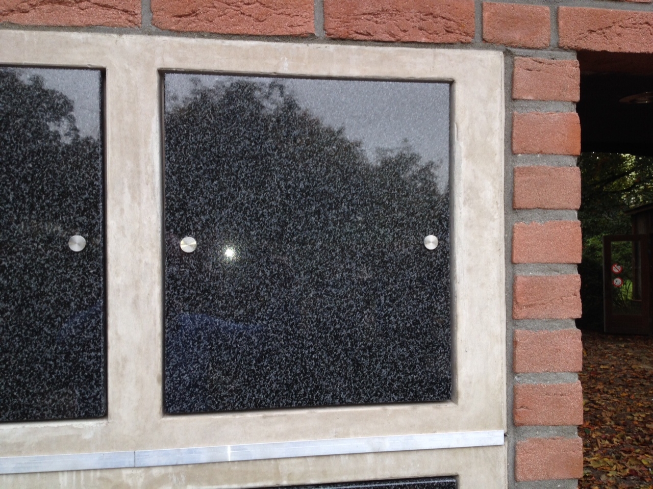 De urnennissen worden aan de voorkant meestal voorzien van een natuurstenen afsluitplaat. Hier kan echter ook ten aanzien van de materiaalkeuze vanaf worden geweken. De afsluitplaten worden standaard gemonteerd met RVS-antidiefstalbouten, er kan echter ook gekozen worden voor RVS sierbouten.