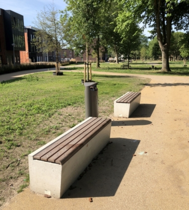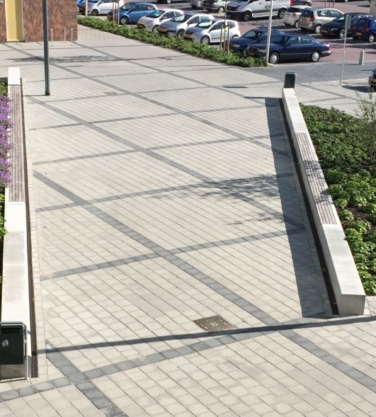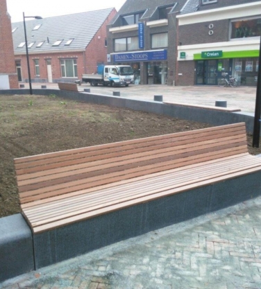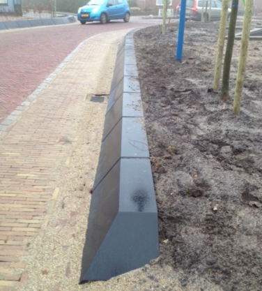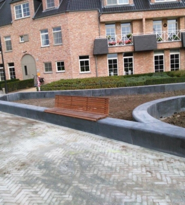 Deze prefab betonnen Giro Parkband is aan de voorzijde taps. Naast de grijze uitvoering kunt u kiezen uit verschillende mengsels, bewerkingen en toevoegingen. Zie ook de standaard tekeningen met hoeken, bochtelementen en cirkelelementen eventueel voorzien van houten zitdelen, uitsparingen, verlichting e.d.