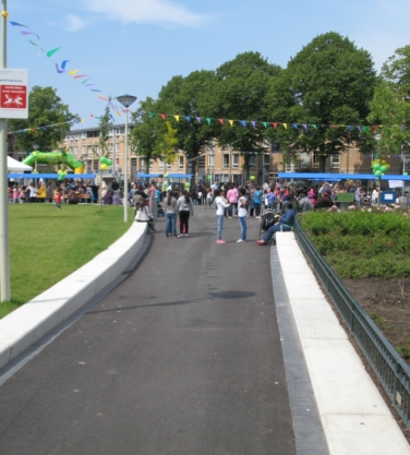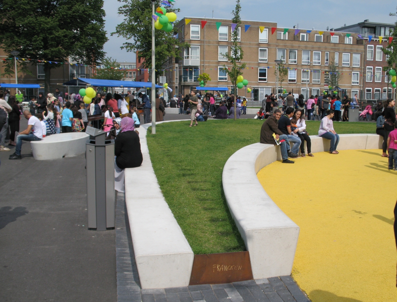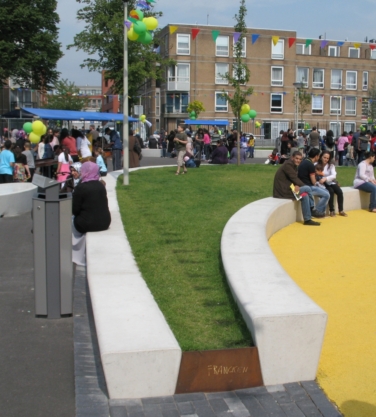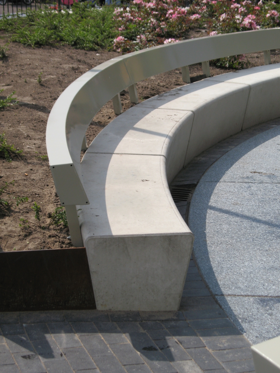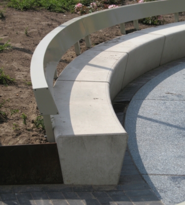 Deze prefab betonnen Giro Parkband is zowel aan de voorzijde als aan de achterzijde taps. Naast de grijze uitvoering kunt u kiezen uit verschillende mengsels, bewerkingen en toevoegingen. Zie ook de tekeningen met standaard hoeken, bochtelementen en het bankelement eventueel voorzien van houten zitdelen, uitsparingen, verlichting e.d.