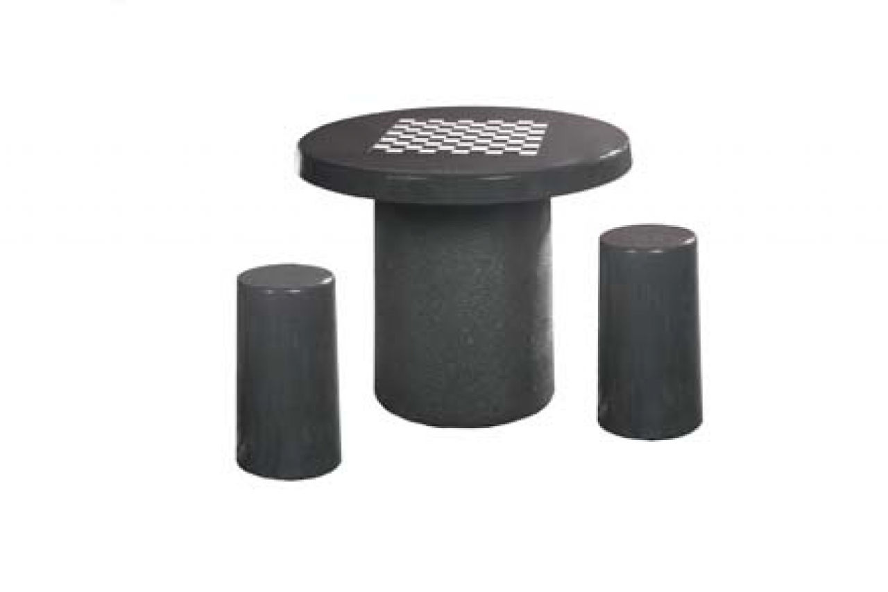De schaaktafel GB-430 wordt gewoonlijk gecombineerd met Giro zitelementen rond in gepolijst beton.