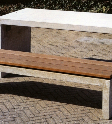 De tafel GB-301 wordt gewoonlijk gecombineerd met de zitbank GB-300.