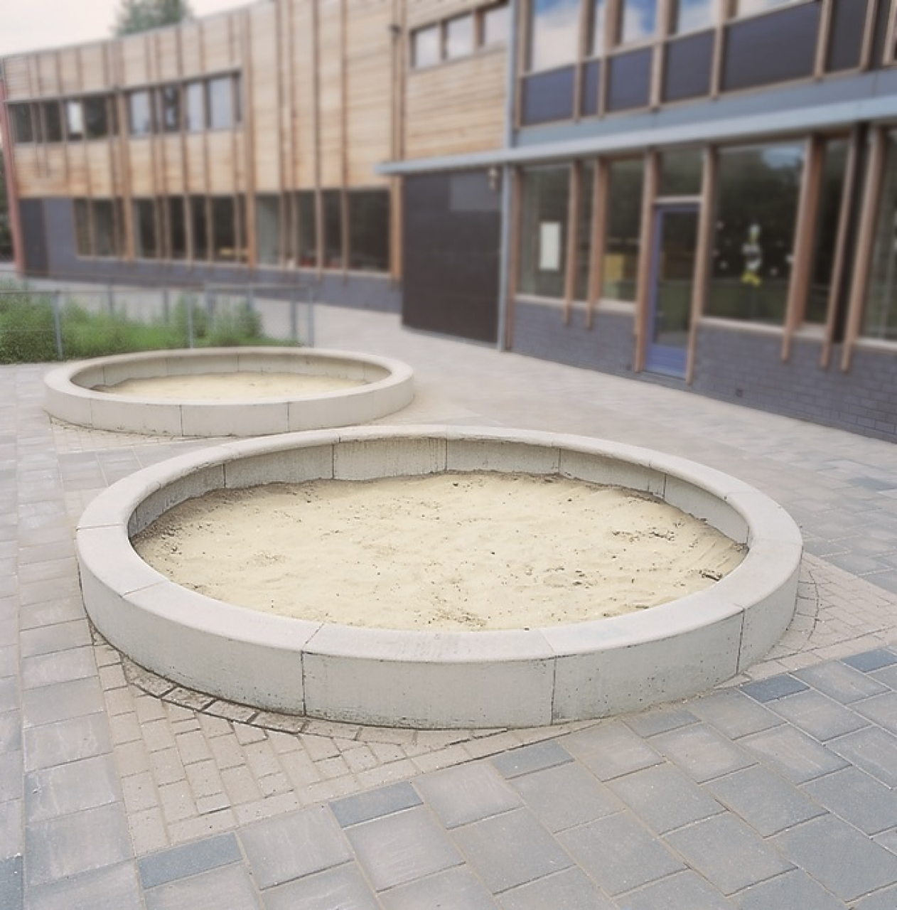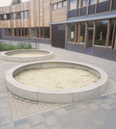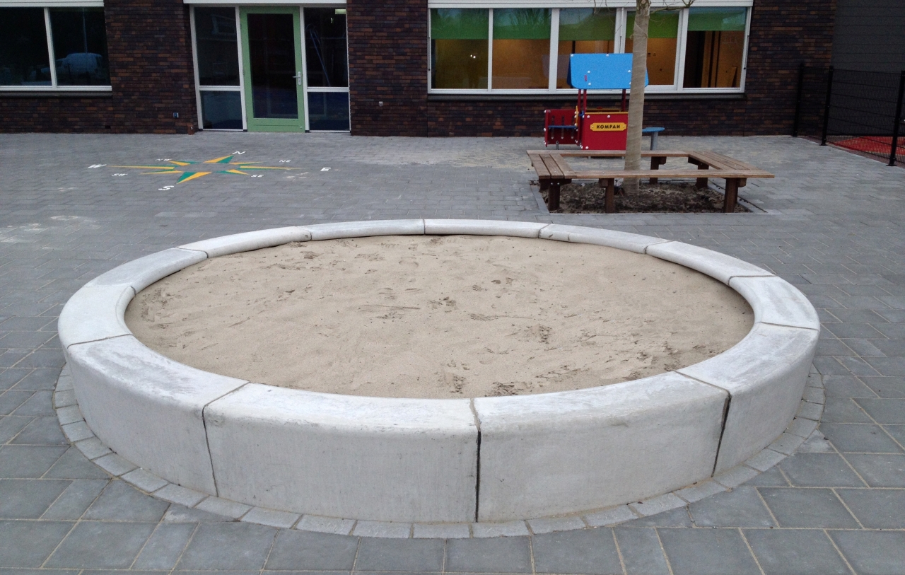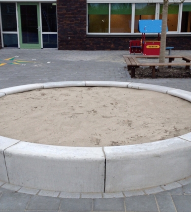 De betonnen Giro Zandbak GZ-604 bestaat uit 12 gebogen elementen (één standaard element) waardoor er een zandbak met een diameter van 4 meter ontstaat. Deze Giro Zandbak is standaard lichtgrijs. Op aanvraag tevens in kleur leverbaar of een speciale bewerking zoals stralen of slijpen. De elementen hebben een overstekende speel- en zitrand waardoor het zand goed in de bak blijft en er prettig op kan worden gezeten. Alle binnen- en buitenranden zijn veilig afgerond.