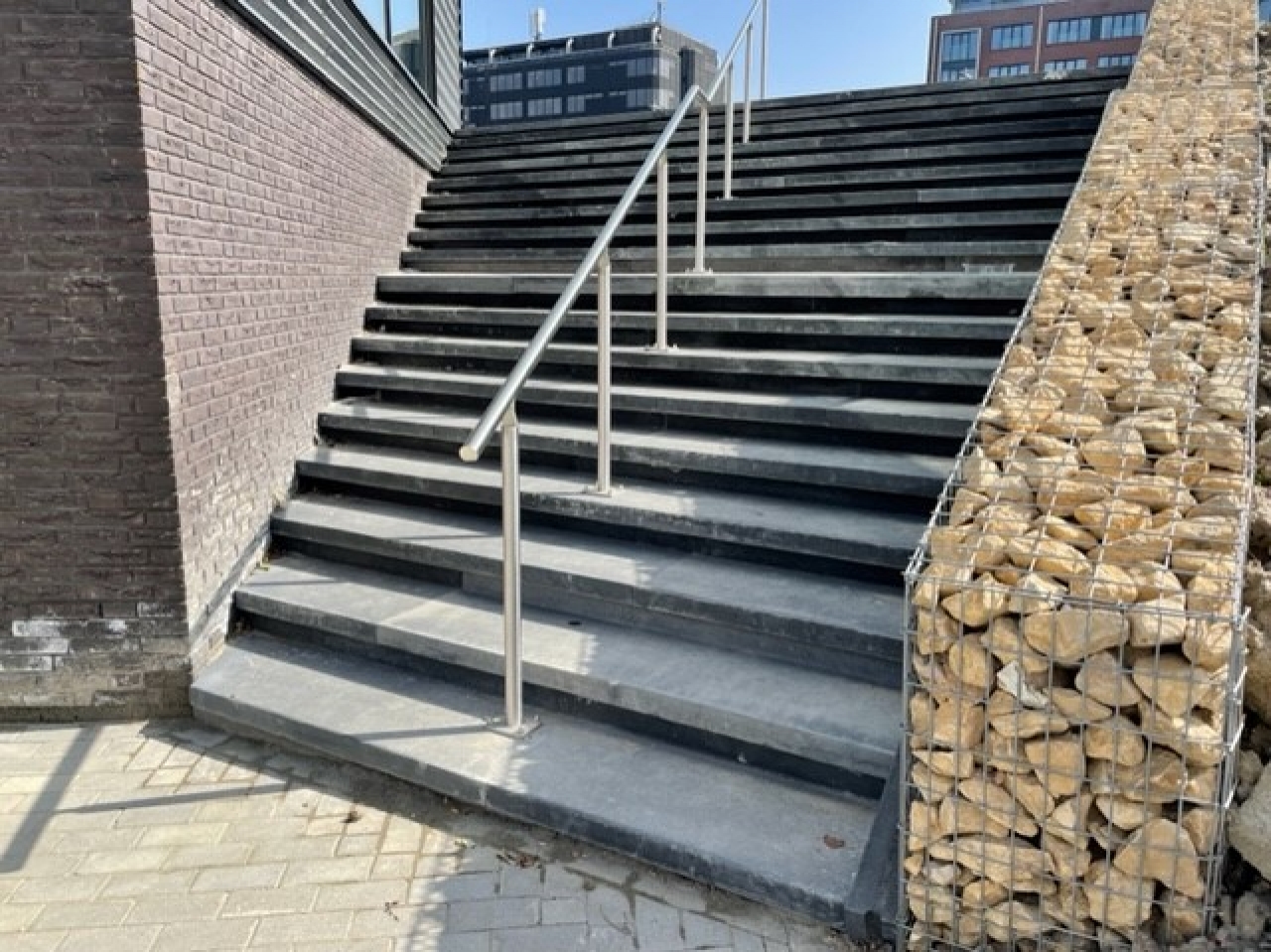 Voor het beëindigen van de trap kan een dekplaat worden toegepast, afm. 52x7/7,5 cm (dxh), de breedte is variabel.