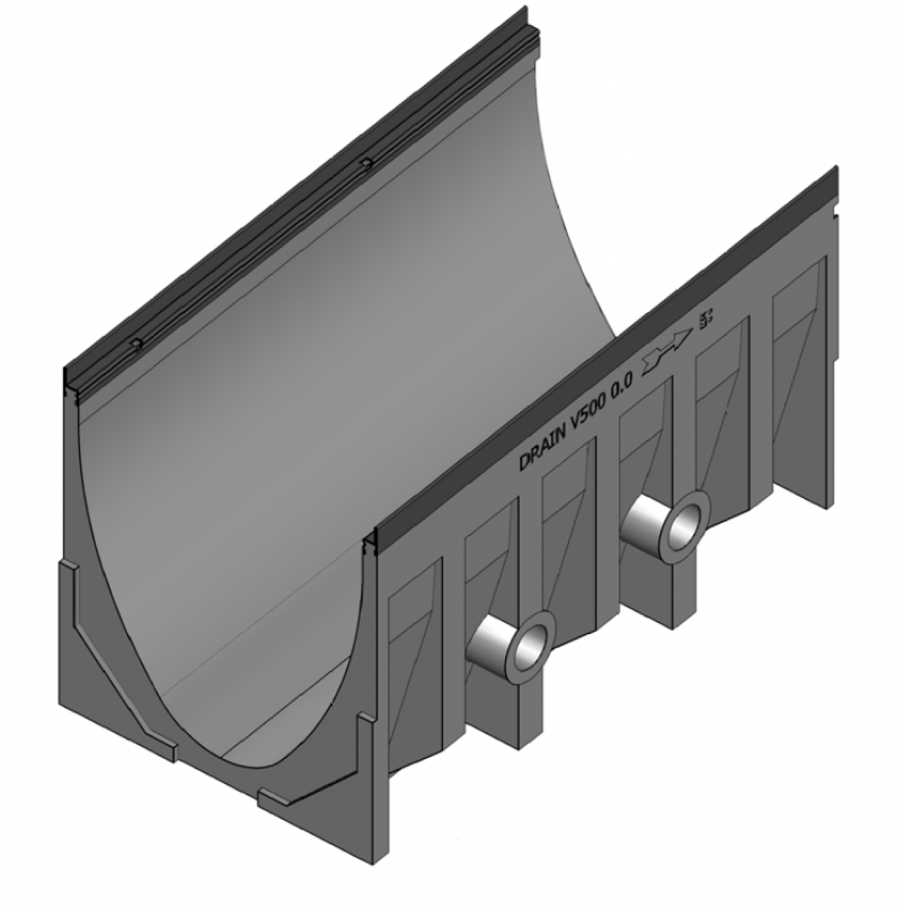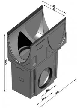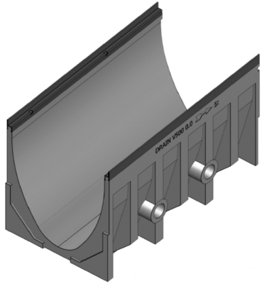 Met geïntegreerde randbescherming en veiligheidsvoeg voor vloeistofdichte aansluiting. Inwendige breedte 500 mm, uitwendige breedte 550 mm.