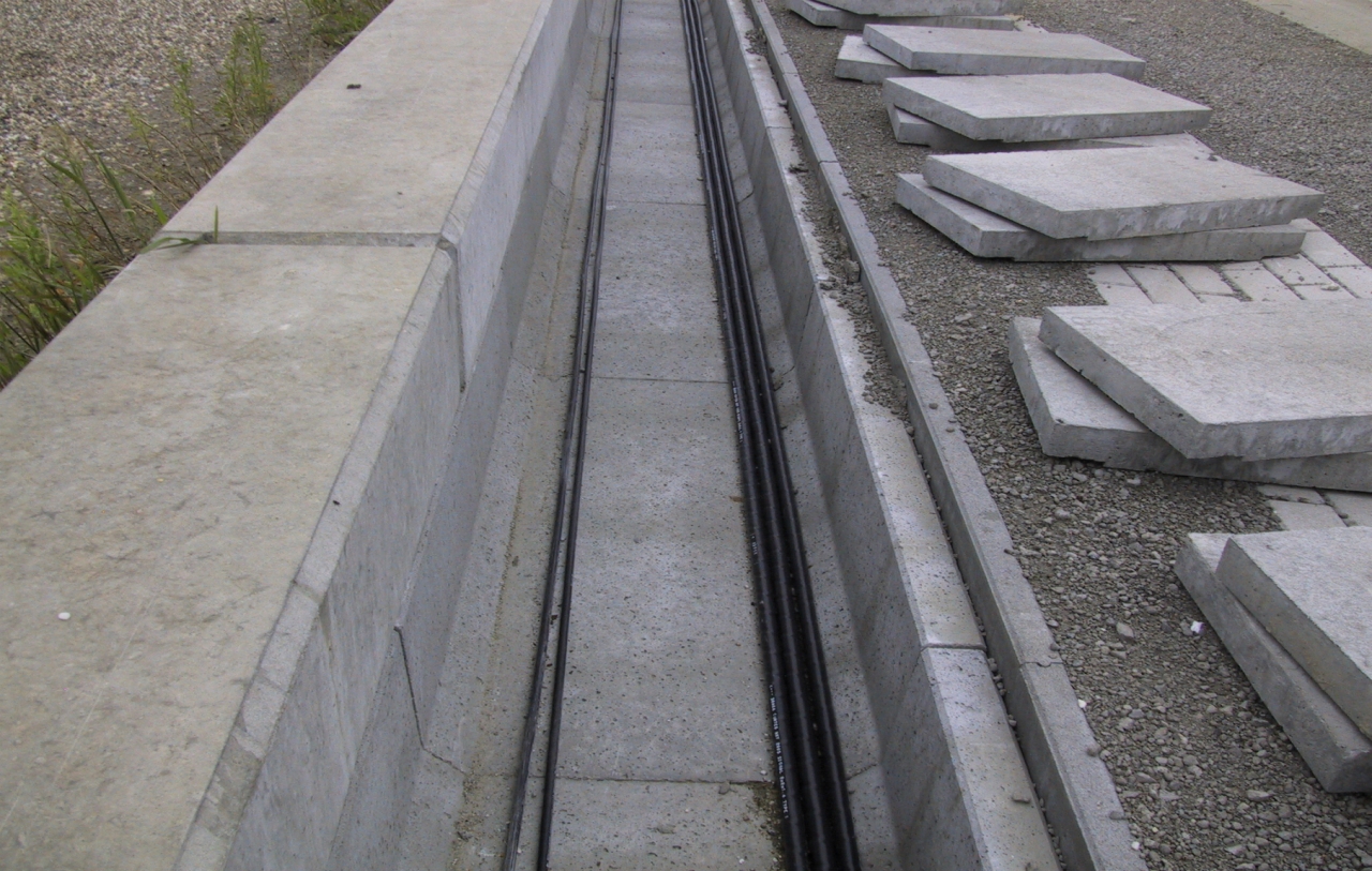 De kabelgoten zijn leverbaar met betonnen deksels, van onbelast tot belastingklasse D400.