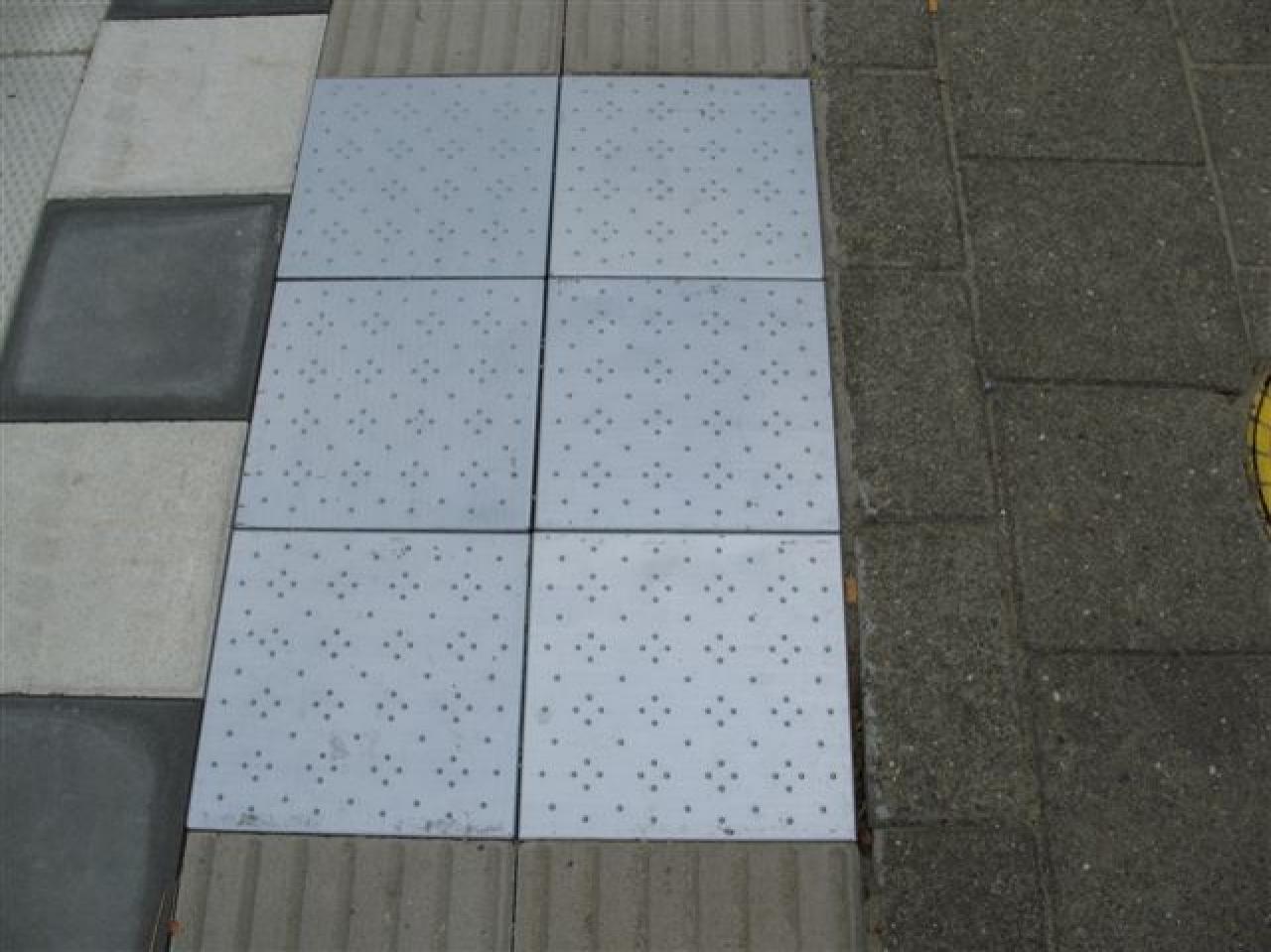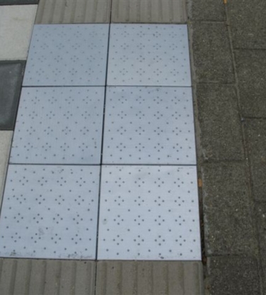 Deze aluminiumtegels geven een waarschuwing door zowel de nopjes als de klank.