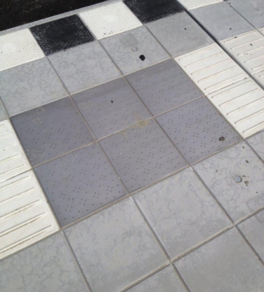 Deze klanktegels wijzen de weg door de geleidelijnen en door de klank van de tegel.