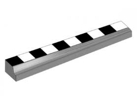 Als de zwart/wit markering gewoon direct achter de elementen toegepast kan worden adviseren wij het basiselement lang 1.0 m toe te passen.