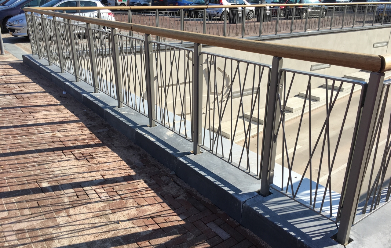 gepoedercoate leuning type Oude Tol met frames en houten bovenregel