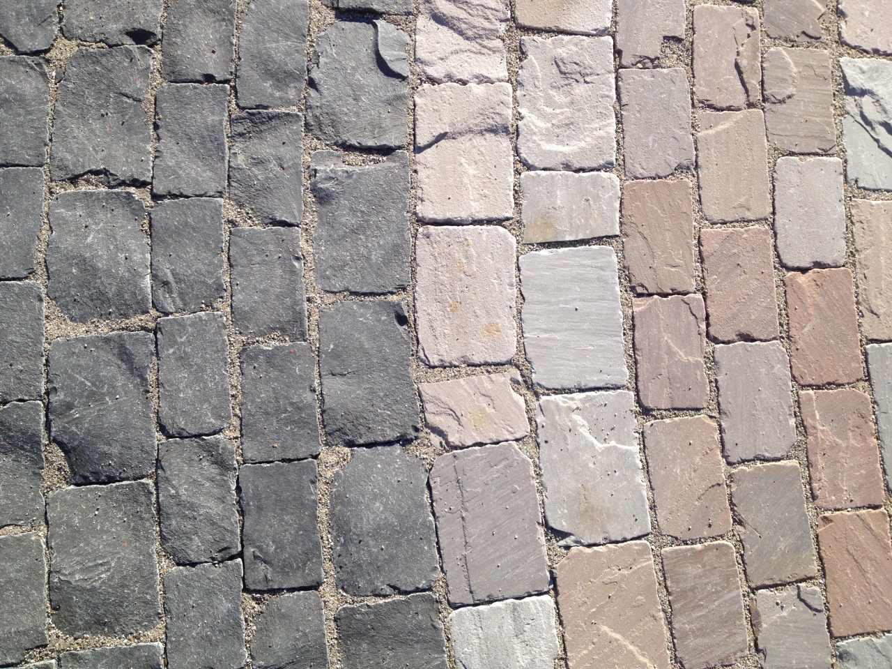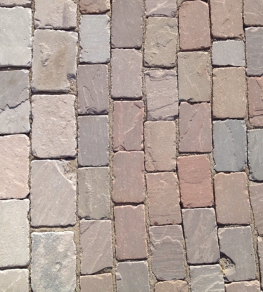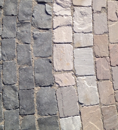 Portugese granietkeien 100x100 mm, gebakken waalformaat en Noorse granietkeien 140x180 mm