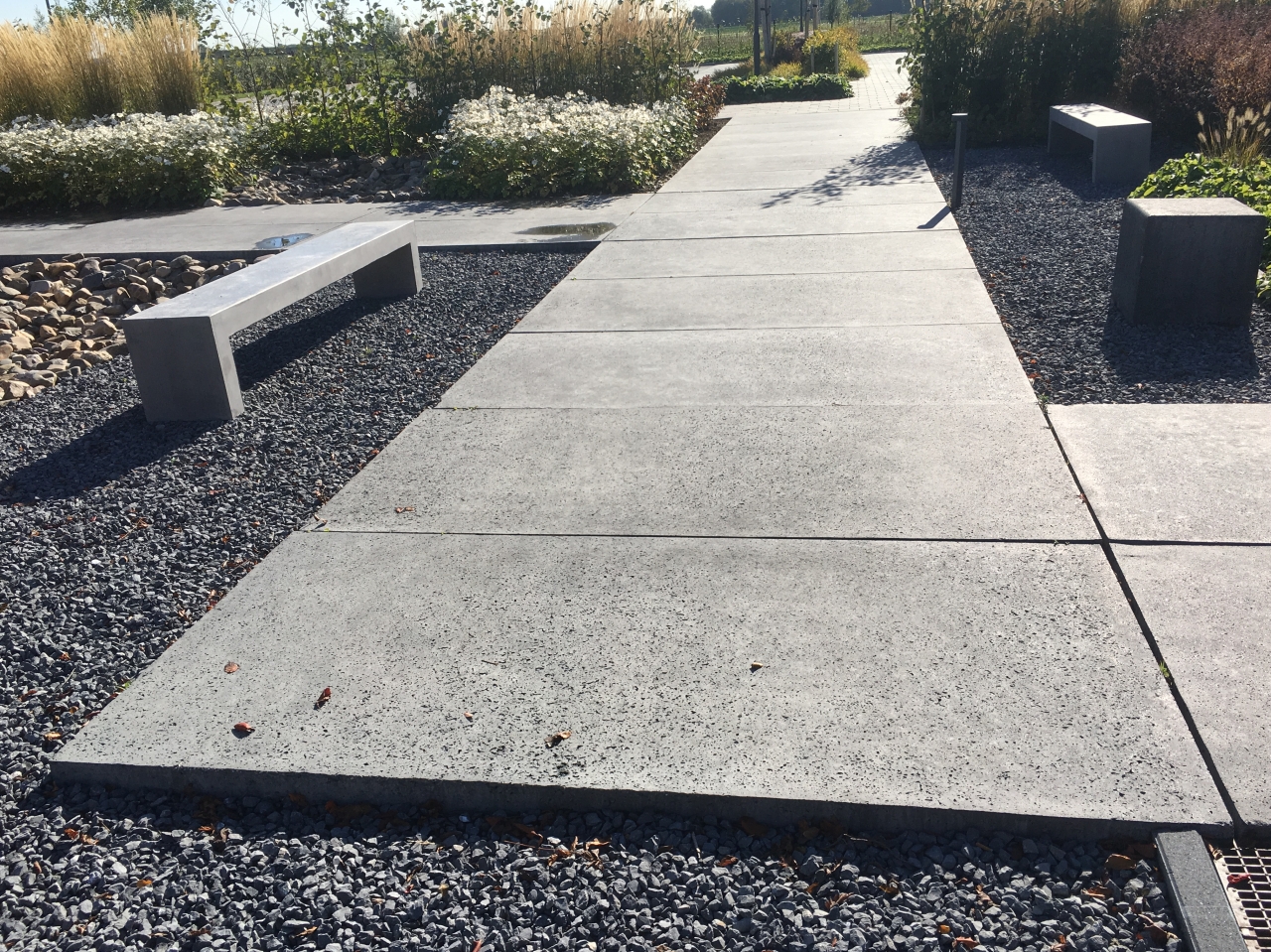 Zo zijn er ook dikformaten, opsluitbanden, stapelelementen, bielsen, traptreden en verschillende zitelementen in deze oppervlaktestructuur leverbaar.