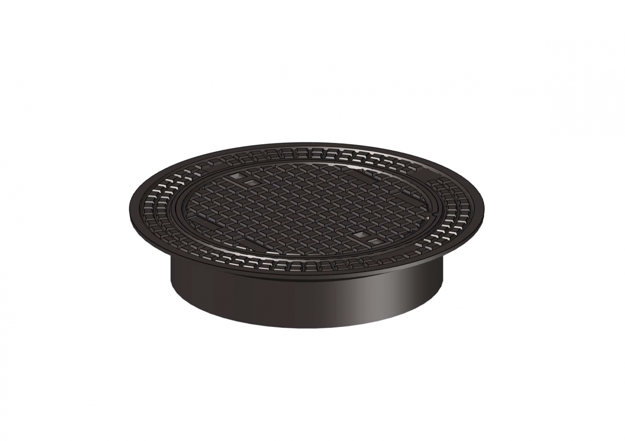 Inwalsbare putafdekking geheel gietijzer, inclusief deksel voor zwaar verkeer, zwaluwstaartvormig ingevulcaniseerde verwisselbare Vepro-zitting in de rand voor integrale opsluiting van de putdeksel. Inwalsbare versie van de RB3223-VEPRO.