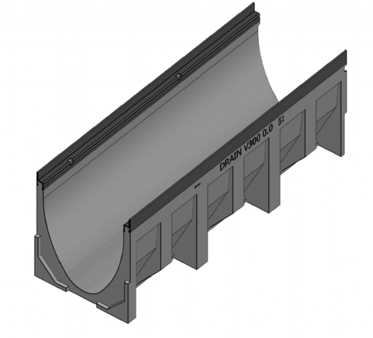 Met geïntegreerde randbescherming en veiligheidsvoeg voor vloeistofdichte aansluiting. Inwendige breedte 300 mm, uitwendige breedte 350 mm.