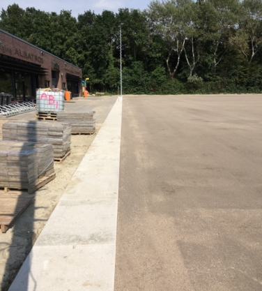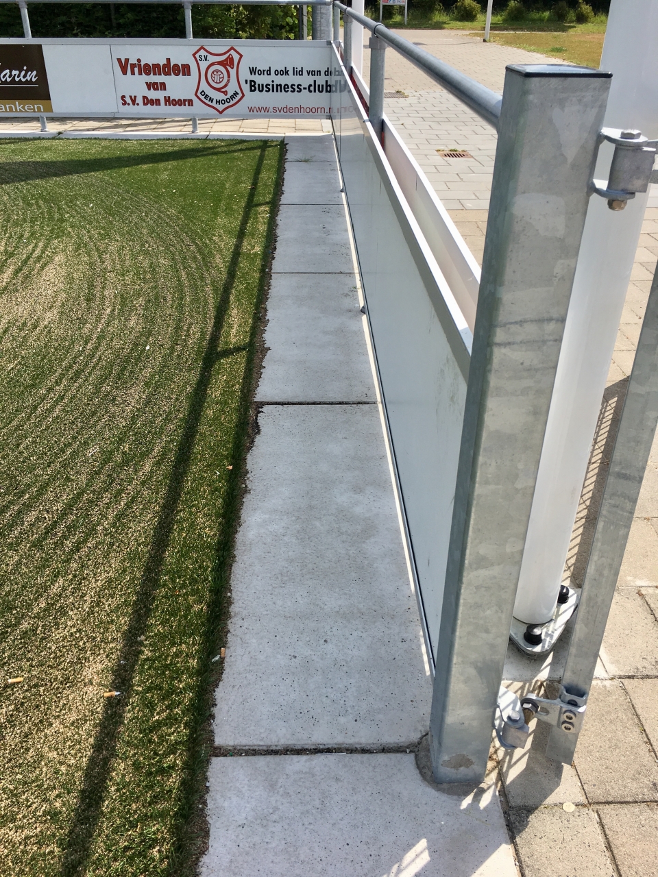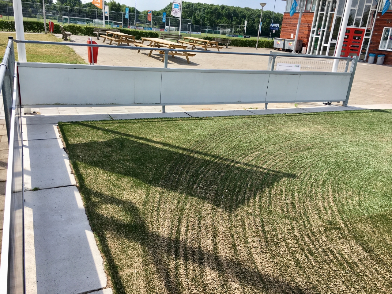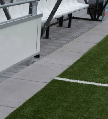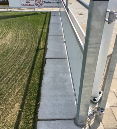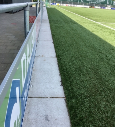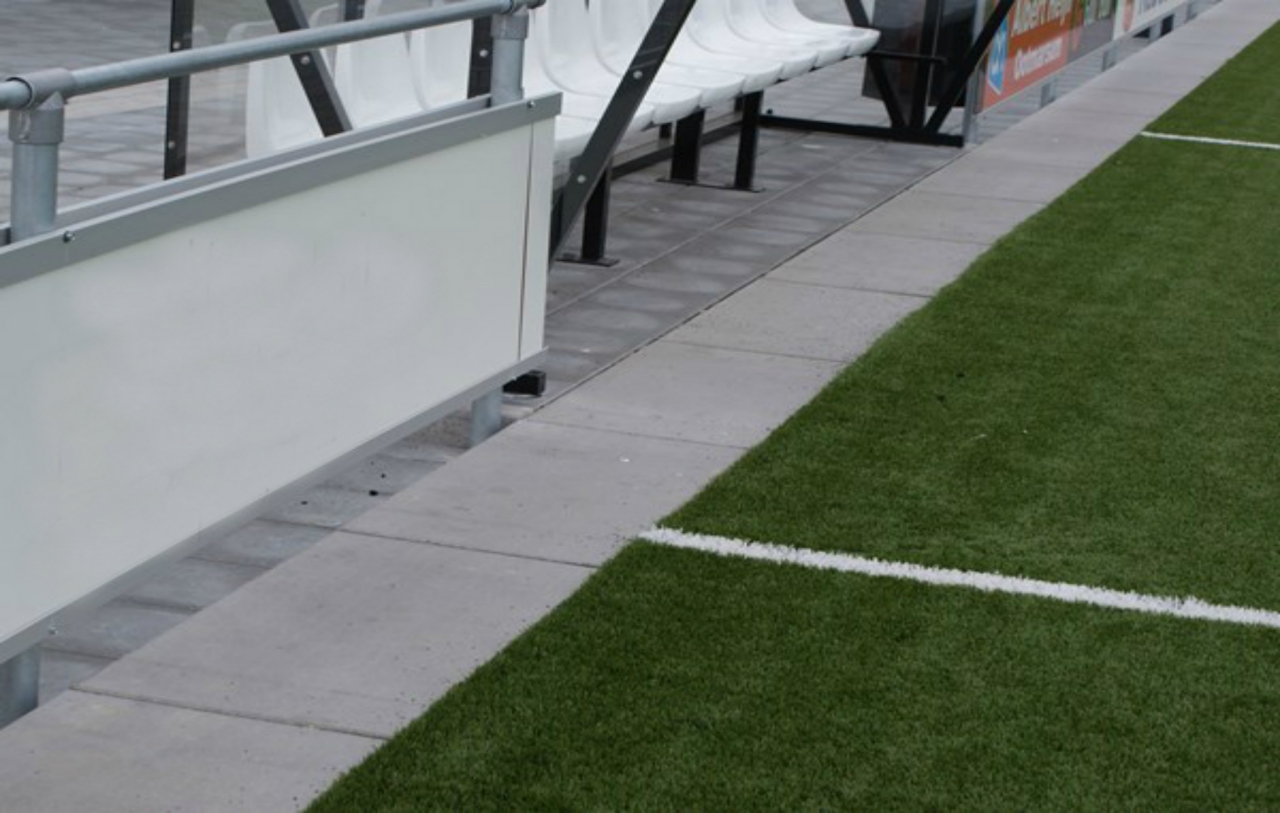 Sinds een aantal jaar worden rond sportvelden vaak betonnen platen toegepast. Het voordeel ten opzichte van de toepassing van (opsluit)banden en tegels is, dat de platen minder voegen hebben en er derhalve minder onkruid kan groeien. Omdat onkruid niet meer bespoten en alleen handmatig gewied mag worden, levert dit grote tijdwinst op.