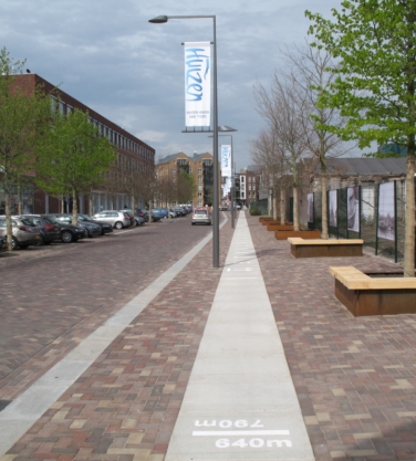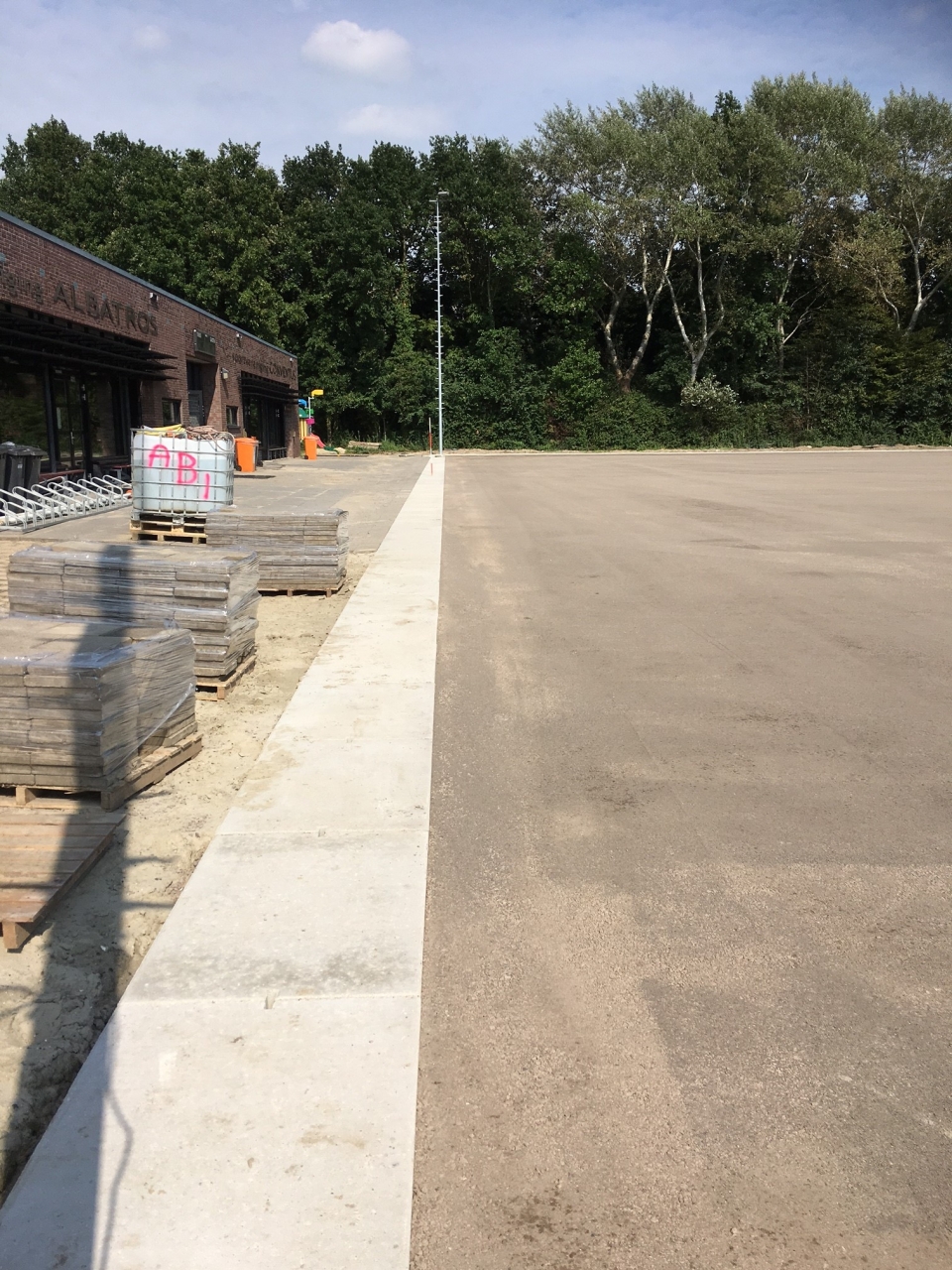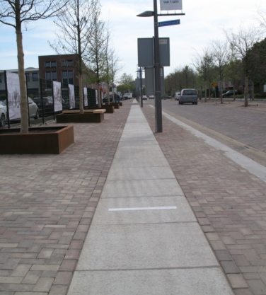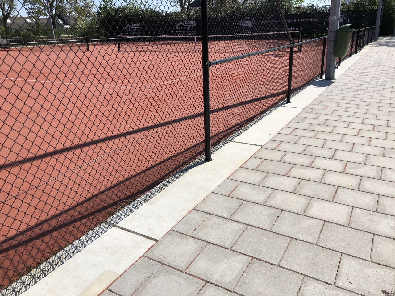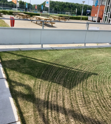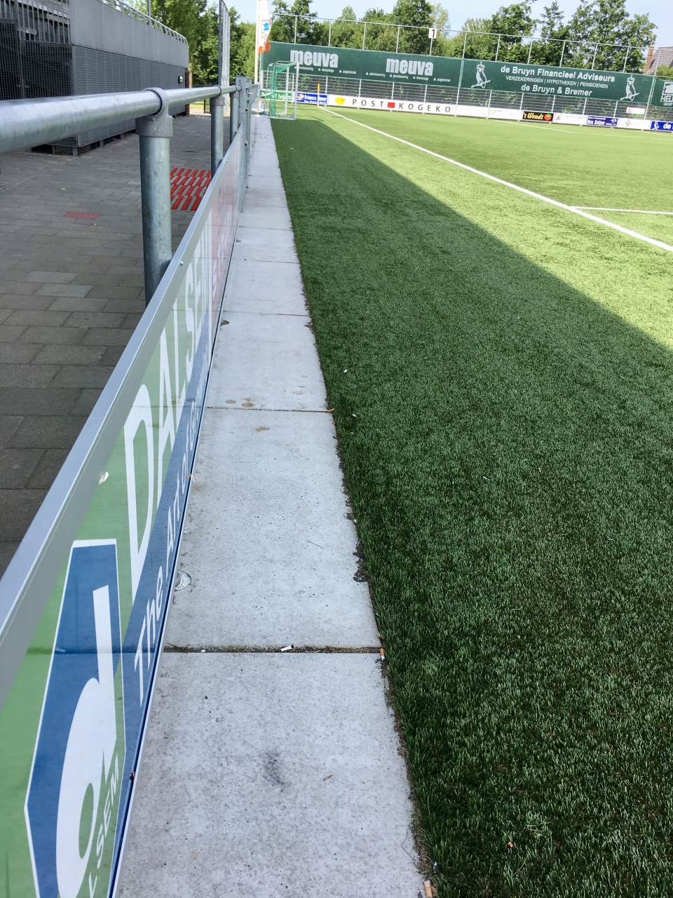 Sinds een aantal jaar worden rond sportvelden vaak betonnen platen toegepast. Het voordeel ten opzichte van de toepassing van (opsluit)banden en tegels is, dat de platen minder voegen hebben en er derhalve minder onkruid kan groeien. Omdat onkruid niet meer bespoten en alleen handmatig gewied mag worden, levert dit grote tijdwinst op.