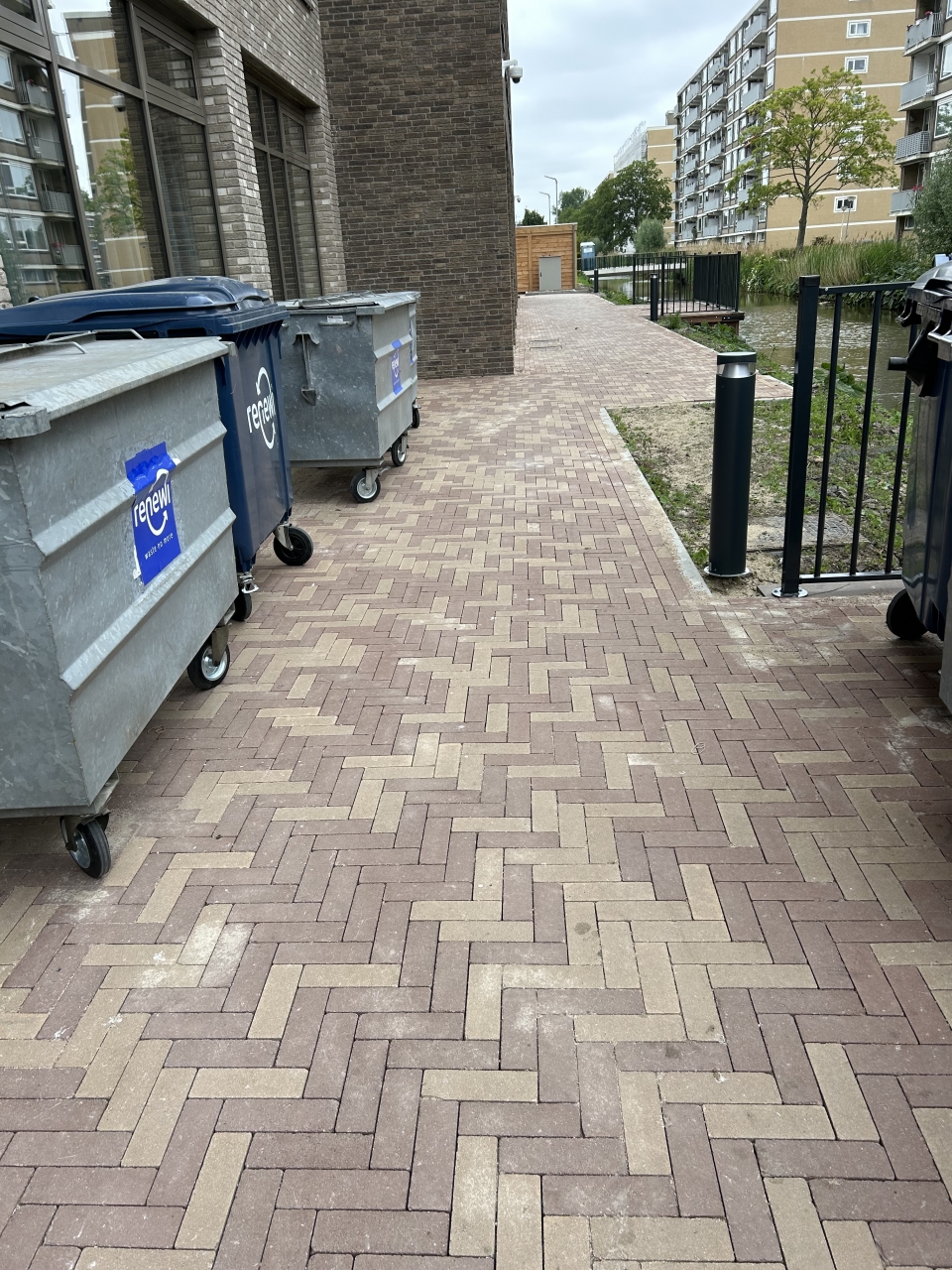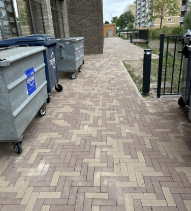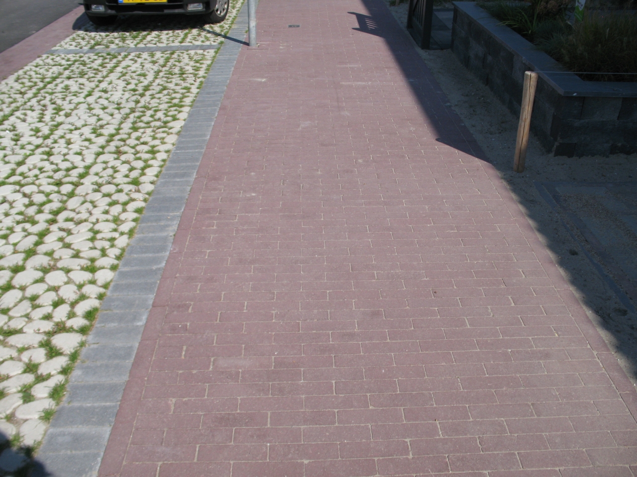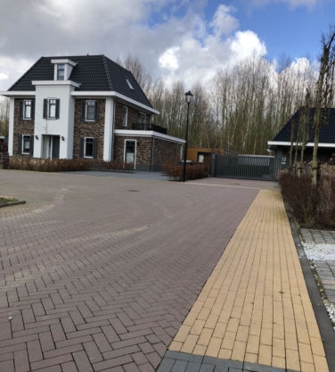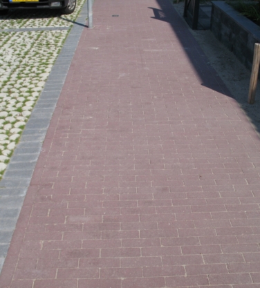 Deze kleurechte deklaagstenen met een dikte van 8 cm hebben geen facet en worden geleverd in stroken van drie verschillende breedtes (7, 10.5 en 14 cm) waardoor er sprake is van een modern wildverband.