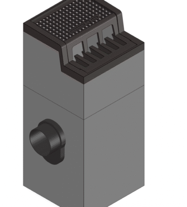 Tweedelige combinatiekolk beton/gietijzer, type STC 120, bandhoogte 120 mm, met U-vormige omranding verankerd aan het beton d.m.v. beugels, scharnierend deksel, rooster, afgeronde inlaatopeningen, verbinding tussen opzetstuk en onderbak naar keuze, sponning, vlak of geleiderand 50 mm, alsmede een in de onderbak ingestort stankscherminbouwgarnituur met stootnokken en aangevulcaniseerde rubbermanchet voor inwendige flexibele aansluiting van PVC-buis diam. 125 / 160 mm. Stankscherm op twee punten scharnierend terugliggend in de wand.