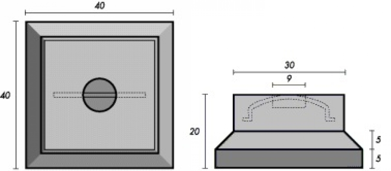| 30x30 | met ingestorte thermisch verzinkte beugel Ø 14 mm | 54.6 |
