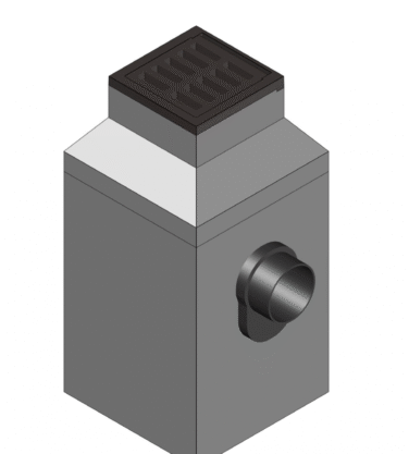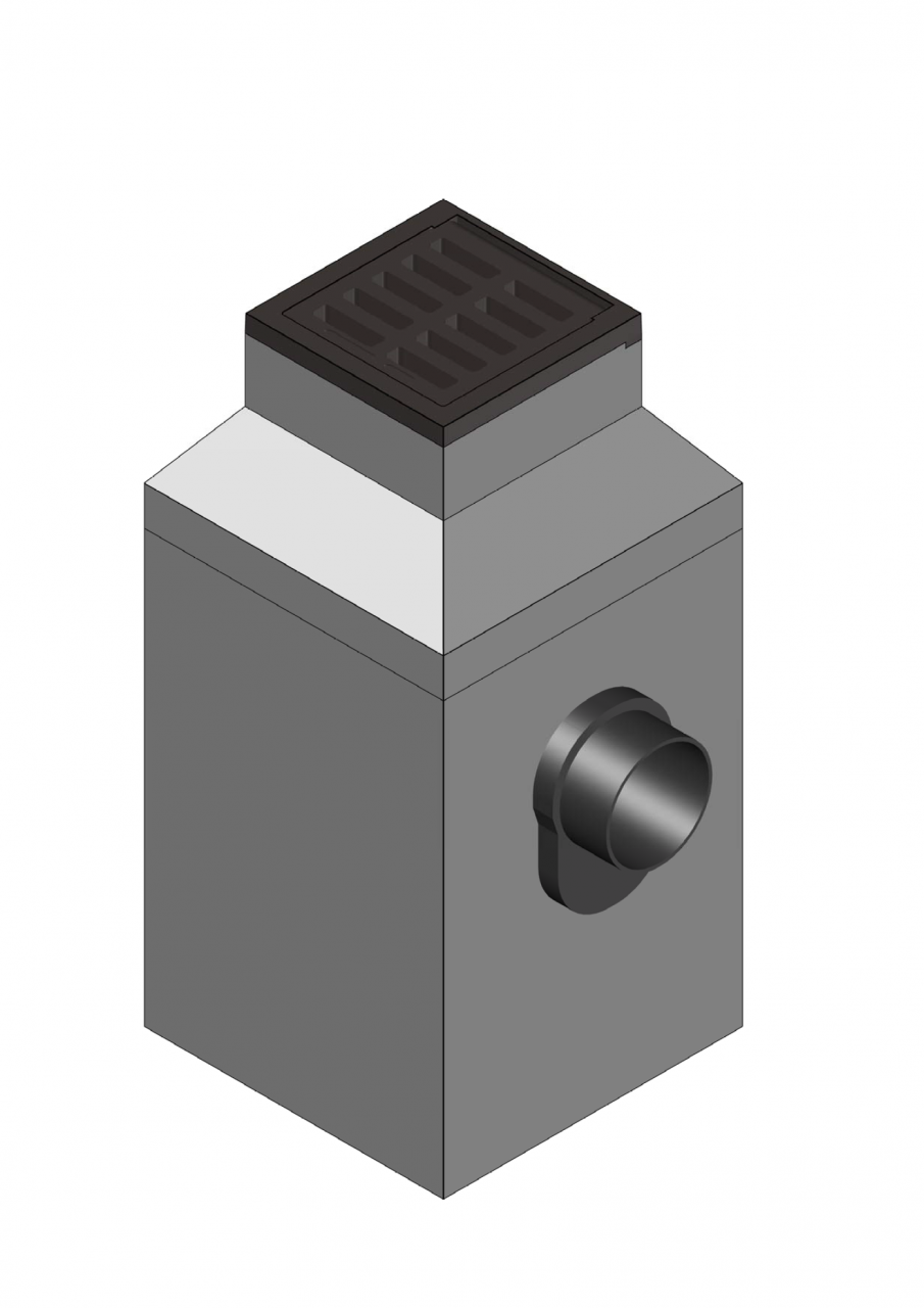 Tweedelige straatkolk beton/gietijzer, type STR 9302, met U-vormige omranding verankerd aan het beton d.m.v. beugels, scharnierend rooster, afgeronde inlaatopeningen, verbinding tussen opzetstuk en onderbak naar keuze, sponning, vlak of geleiderand 50 mm, alsme­de een in de onderbak ingestort stankscherminbouwgarnituur met stootnokken en aangevulcaniseerde rubbermanchet voor inwendige flexibele aansluiting van PVC-buis diam. 125 / 160 mm. Stankscherm op twee punten scharnierend terugliggend in de wand.