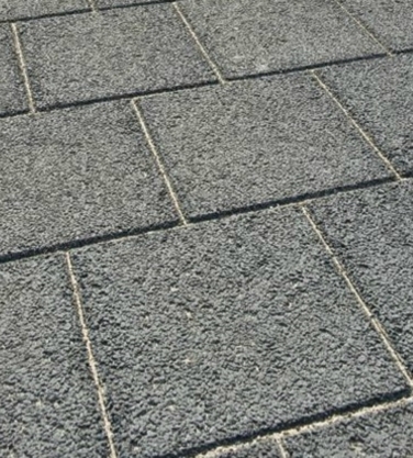 Door het weglaten van de fijne zandfractie hebben de tegels een robuuster uiterlijk.