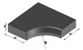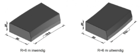 | afmetingen (cm) | lengte (cm) | straal R (m) | diepte (cm) | gewicht (kg) | |