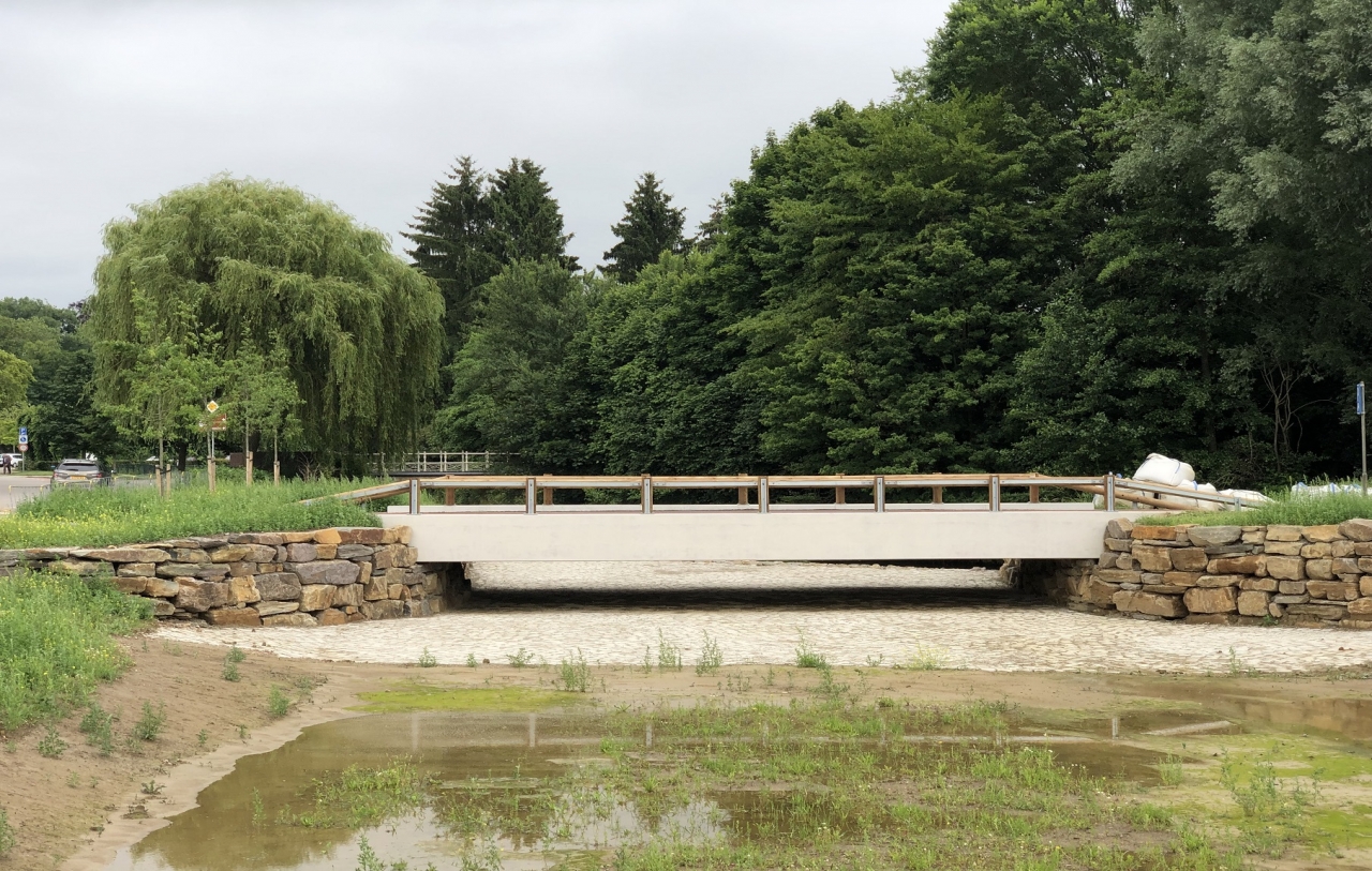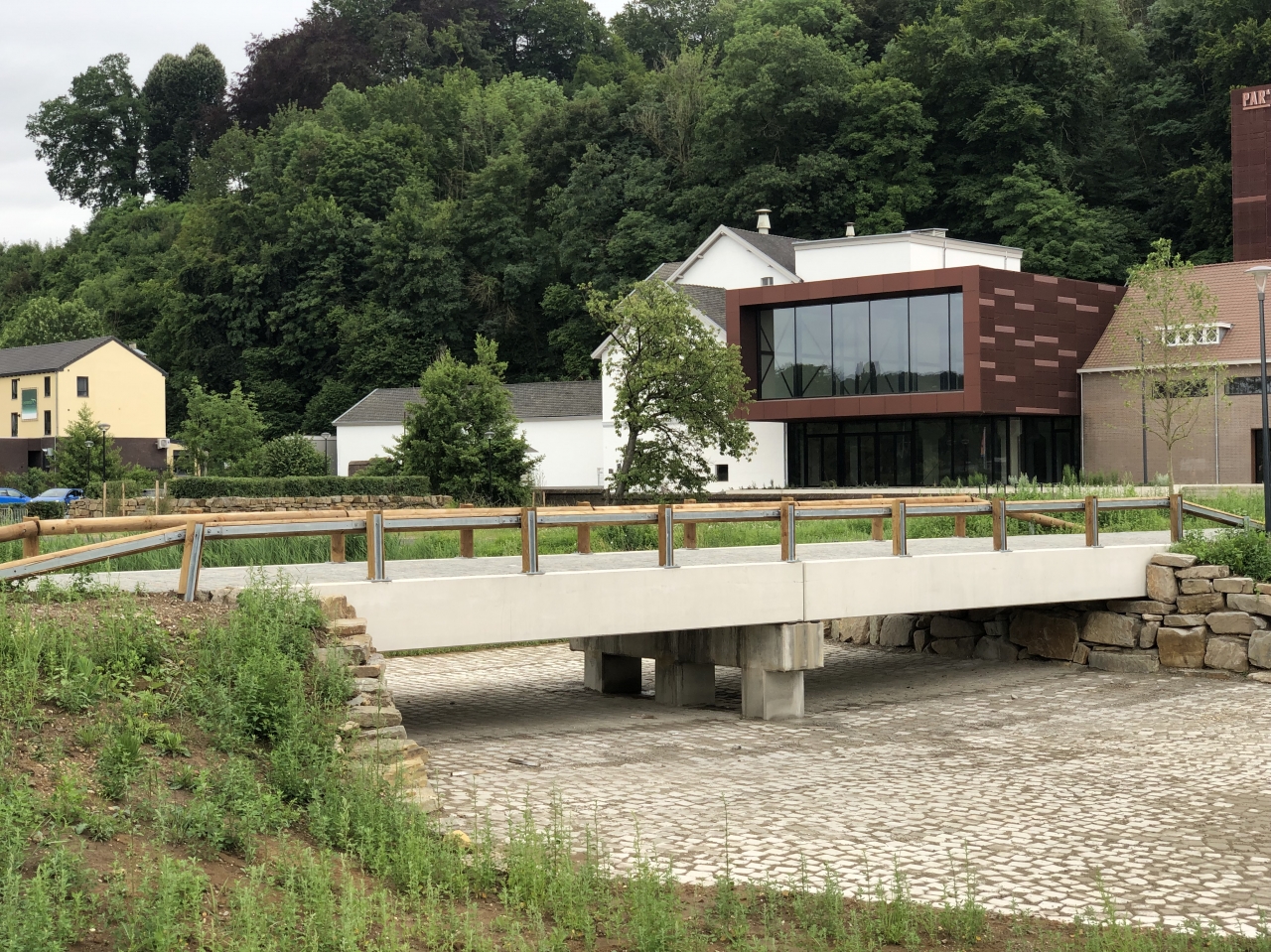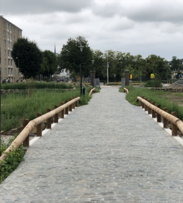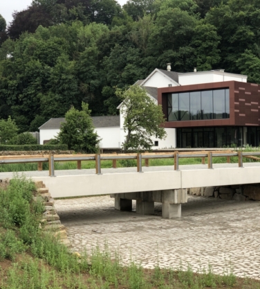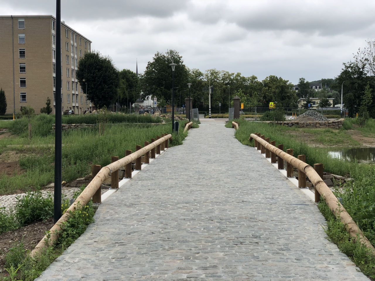 Valkenburg a/d Geul, vlakke brug met natte knoopverbinding voorzien van kasseien