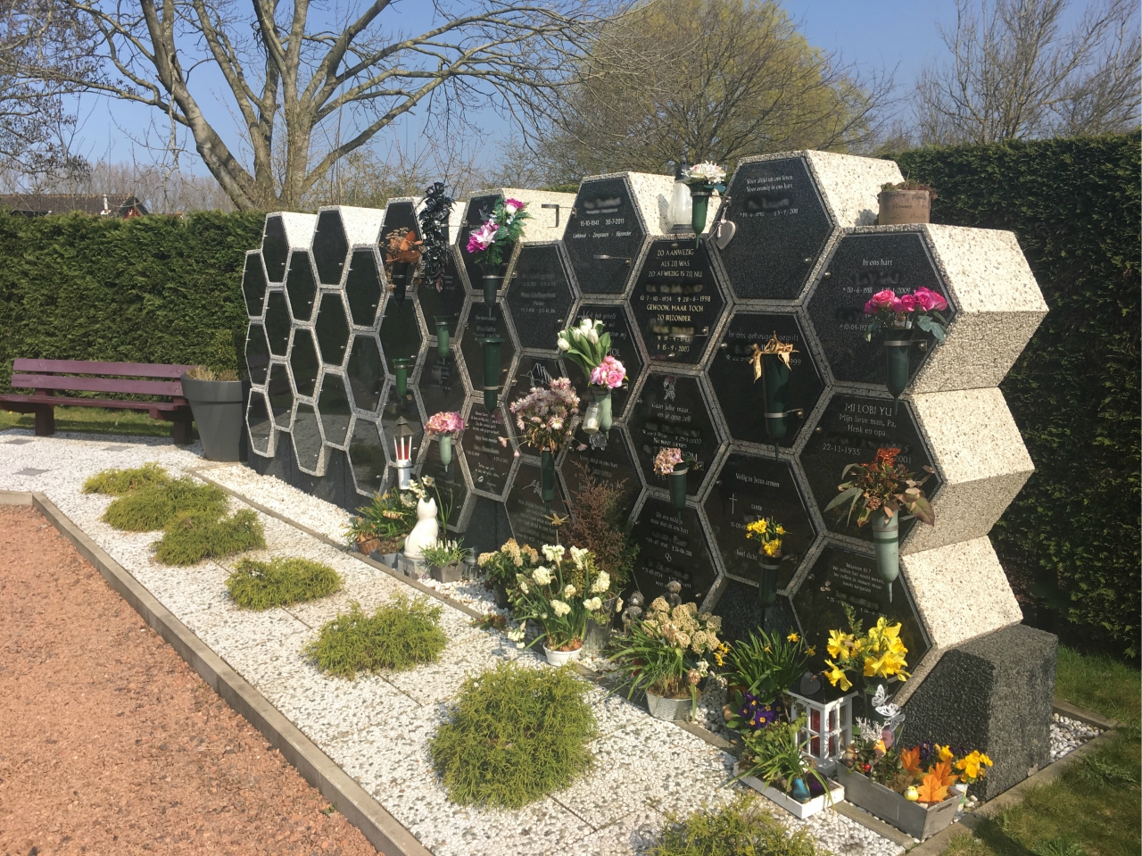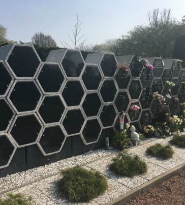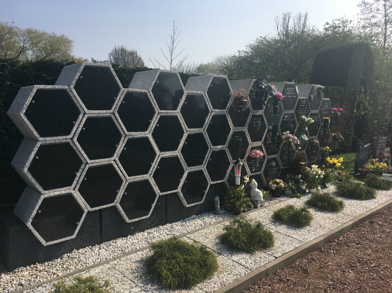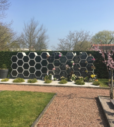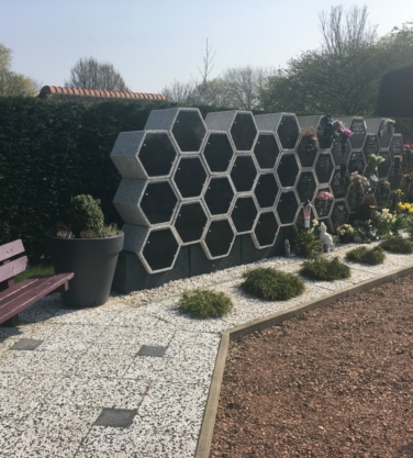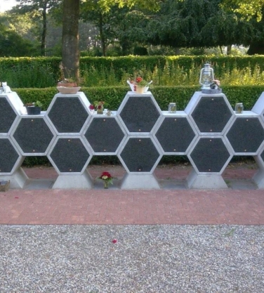 De Columbariumelementen in de zeskantige uitvoering hebben al op heel veel begraafplaatsen hun toepassing gevonden. Het voordeel van deze elementen is dat de te creëren wand steeds verder kan worden uitgebreid.