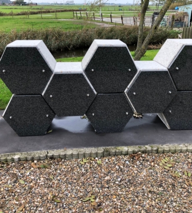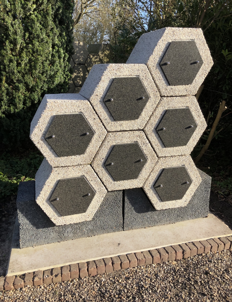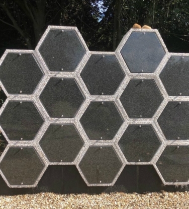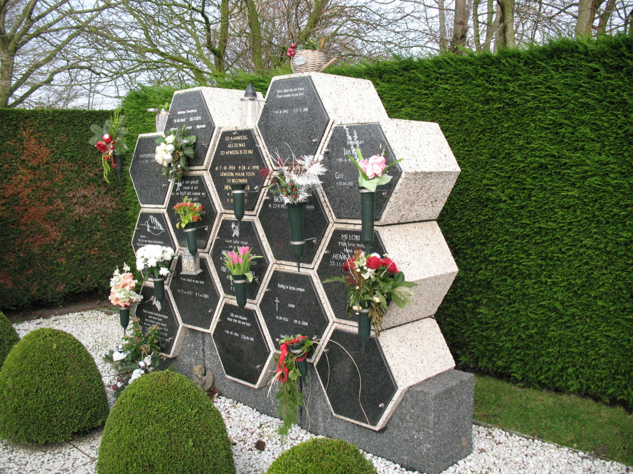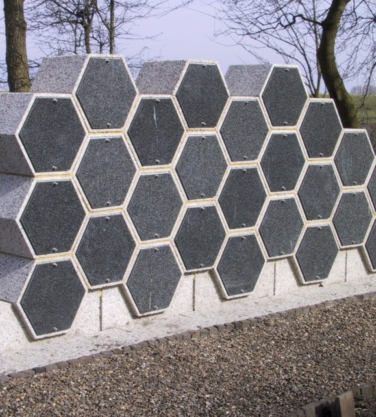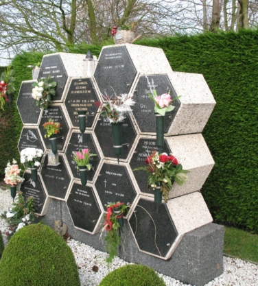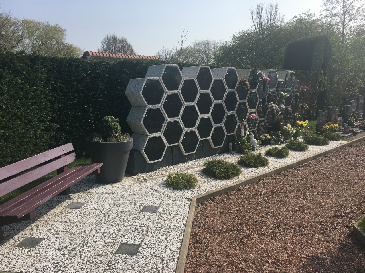 De Columbariumelementen in de zeskantige uitvoering hebben al op heel veel begraafplaatsen hun toepassing gevonden. Het voordeel van deze elementen is dat de te creëren wand steeds verder kan worden uitgebreid.
